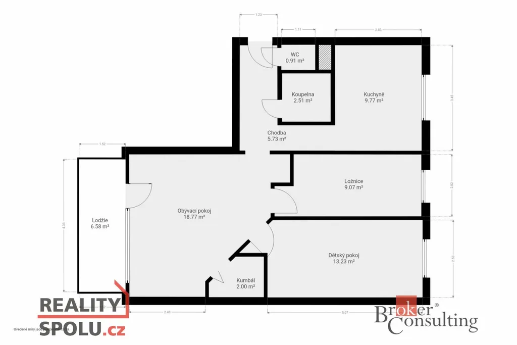 Dominantou bytu je obývací pokoj se vstupem na prosklenou lodžii, která rozšiřuje obytný prostor a nabízí příjemné místo k posezení po celý rok. Kuchyně i ostatní místnosti jsou prakticky řešeny s dostatkem úložných prostor.