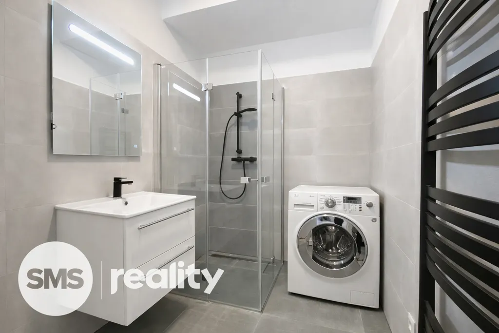 Dispozice bytu nabízí samostatnou kuchyň, obývací pokoj a ložnici. Kuchyňská linka je vybavena spotřebiči – myčka nádobí, indukční varná deska, trouba a digestoř. Koupelna disponuje sprchovým koutem, toaletní skříňkou a pračkou.