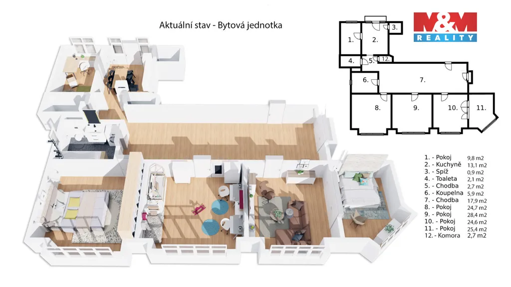 Byt je připraven k rekonstrukci a nabízí široké možnosti využití – od reprezentativního bydlení až po rozdělení na více menších jednotek. Někteří majitelé v domě již podobné dispozice využívají pro pronájem, což z této nabídky činí zajímavou příležitost i z pohledu výnosového potenciálu.