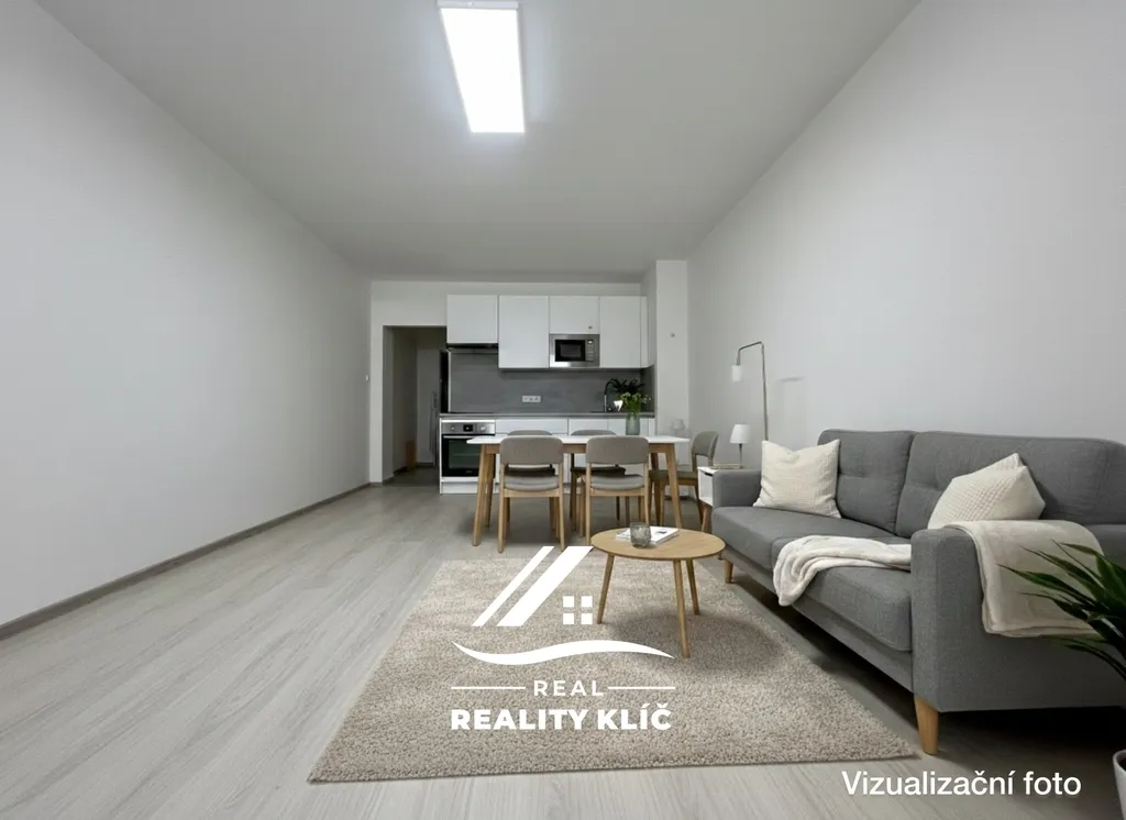 Dominantou bytu je útulný a světlý pokoj, který díky své orientaci nabízí dostatek denního světla. Kuchyň je vybavena moderní kuchyňskou linkou včetně indukční varné desky, elektrické trouby, digestoře, myčky nádobí a mikrovlnné trouby. Koupelna je společná s WC a je vybavena sprchovým koutem, umyvadlem se skříňkou, zrcadlem a novou pračkou.