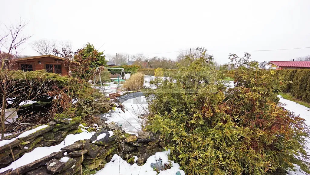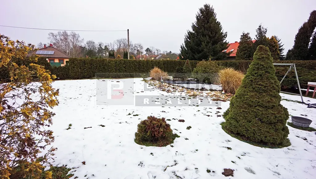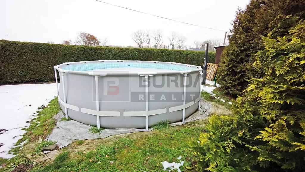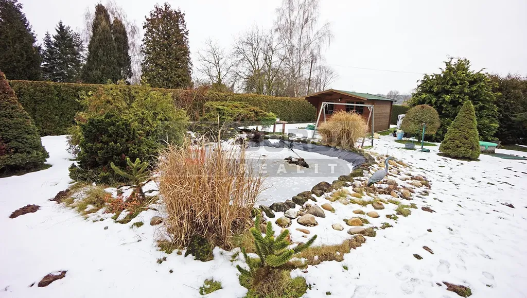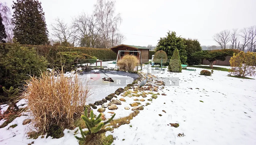 Na pozemku je jezírko, které bylo vytvořeno vložením fólie do vyhloubené jámy. Jezírko je lemováno okrasnými dřevinami a zakrslými kultivary. Na pozemku je dále bazén o průměru 4,6m.