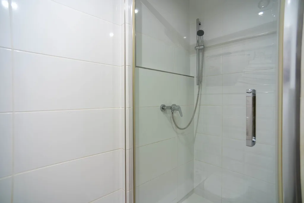 Bylo zbourané původní umakartové jádro, díky čemuž vznikla větší koupelna se sprchovým koutem a toaletou.