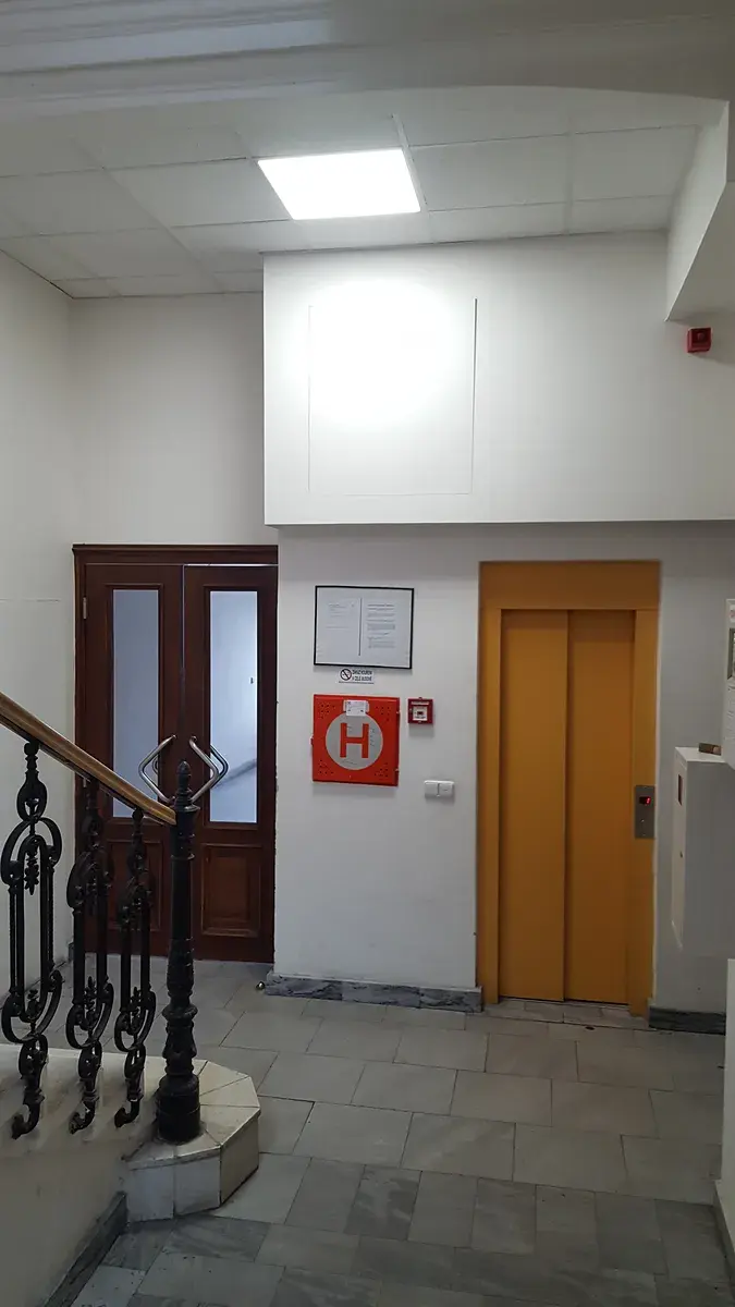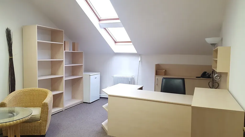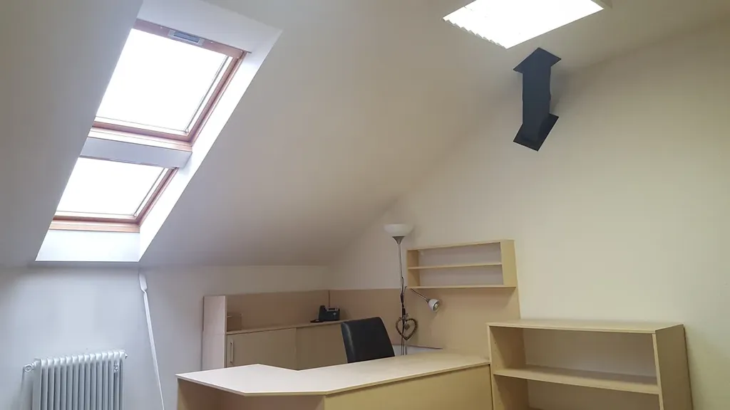 Kancelář se nachází v posledním patře cihlového domu s výtahem, kde je celkem 6. samostatných kanceláří. Jde o poslední samostatnou kancelář, která má 1 x 19,30 m2 pod vlastním uzamčením s přístupem 24 hod.