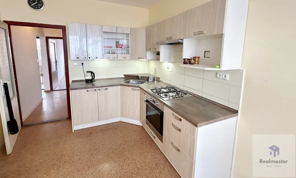 Kuchyně také prošla rekonstrukcí. Kuchyně se vyznačuje velkým prostorem s dostatkem místa pro jídelní stůl.