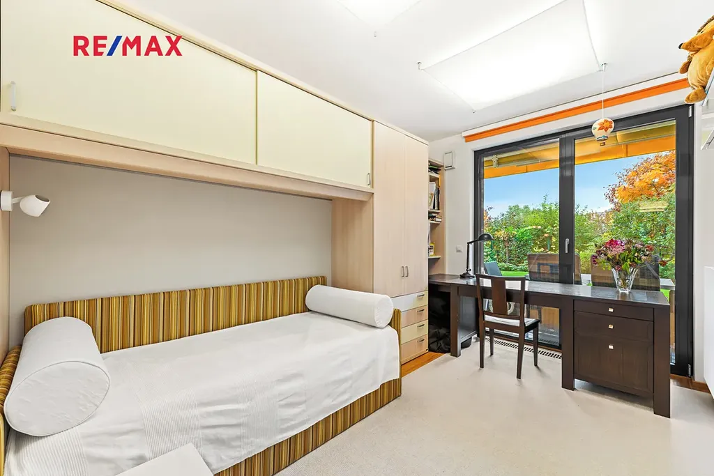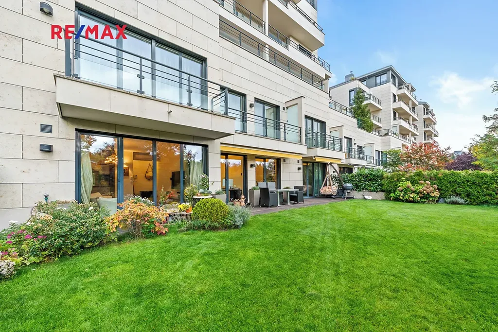 Nabízený byt 4+kk o ploše 120 m² se nachází v přízemí s přímým vstupem do soukromé zahrady o rozloze 153 m², která přechází přímo do parku. Díky jižní orientaci je byt celý den plný světla. Součástí prodeje jsou také dvě garážová stání a sklep.