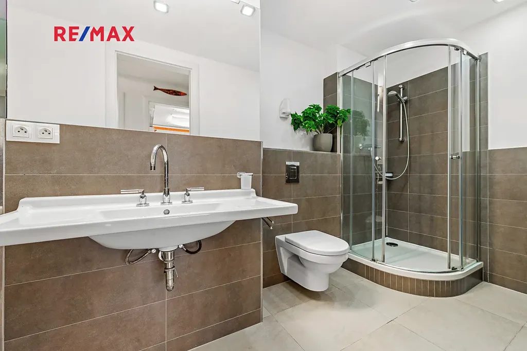 Interiér bytu je laděn do světlých přírodních tónů a byl zařízen s důrazem na vkus, kvalitu a nadčasový design. Byt nabízí výborně řešenou dispozici s prostorným obývacím pokojem, kuchyní a jídelní částí, oddělenou klidovou zónou se třemi ložnicemi a třemi koupelnami. Každý detail byl promyšlen — od rozšířených dveřních otvorů po dokonalé technické vybavení.