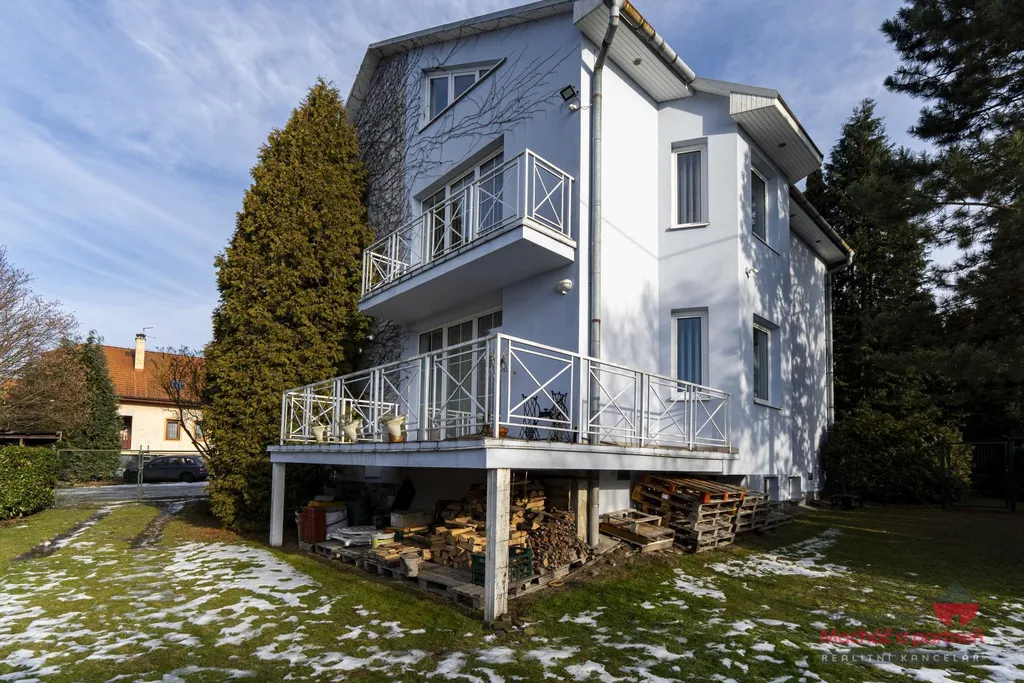 Střešní krytina je z kanadského šindele. Součástí domu je garáž pro dvě auta v suterénu, další parkování je možné na pozemku.