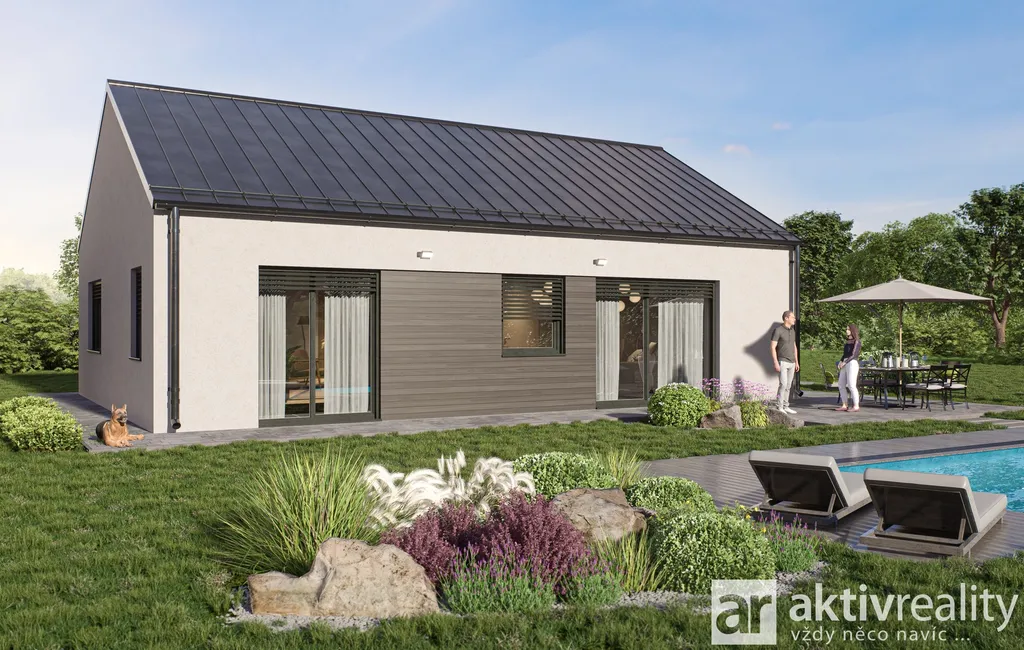 Ideální volba pro pár, menší rodinu nebo pro klienty, kteří hledají pohodlné bydlení na jednom podlaží bez nutnosti schodiště.
