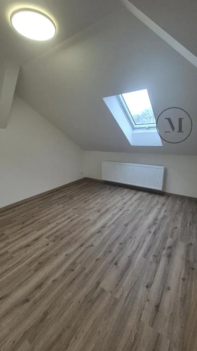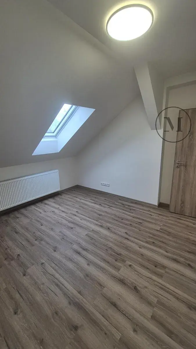 Dominantou bytu je prostorný obývací pokoj s kuchyňským koutem. Moderní koupelna je vybavena sprchovým koutem. Podkrovní charakter bytu vytváří velmi příjemnou atmosféru.