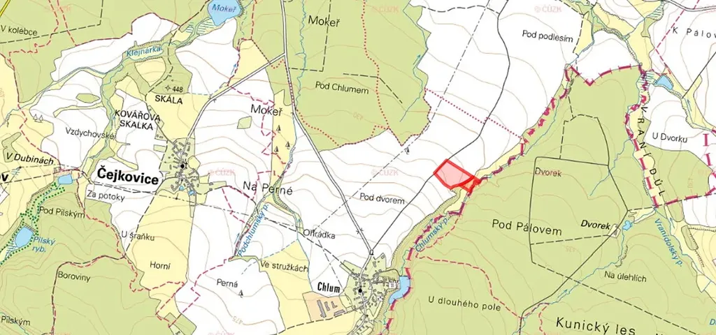 K prodeji jsou parcely č. 518 a 519 zapsané na LV 10060 v KÚ Chlum u Zbýšova.