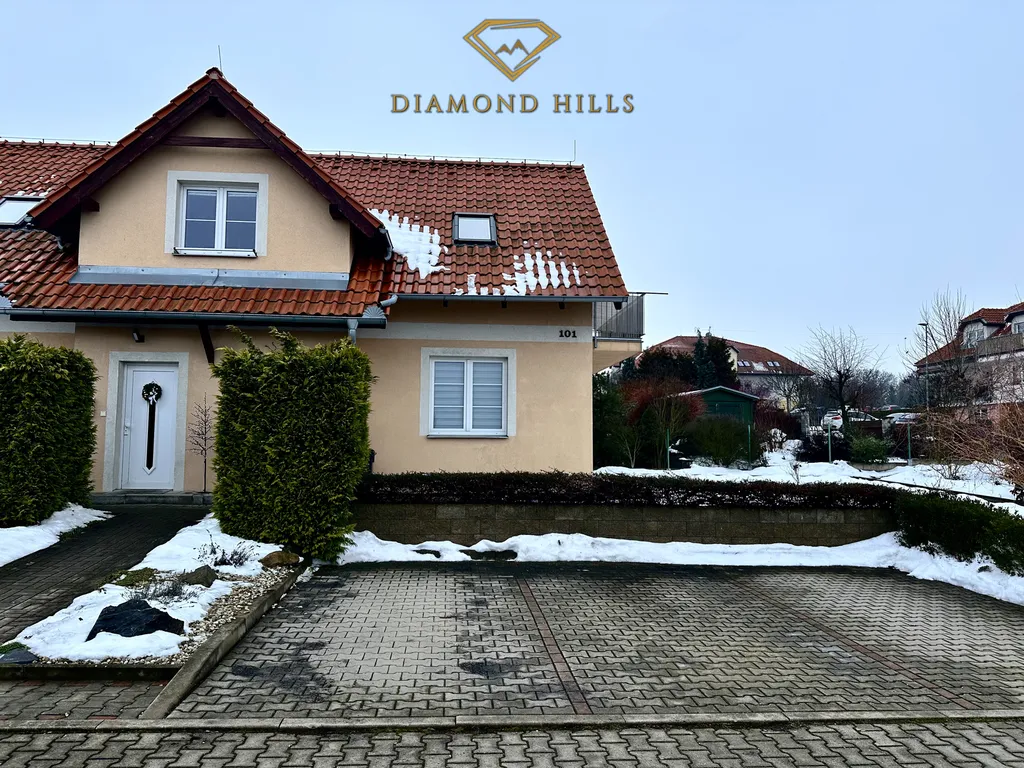 V přízemí vás přivítá samostatný vchod s předsíní a schodištěm do obytné části. Hlavní patro nabízí otevřený a světlý obývací prostor s kuchyňským koutem, kde nechybí vestavné spotřebiče (trouba, varná deska, lednice s mrazákem, myčka, digestoř). Ložnice vás okouzlí výhledem na horu Říp, který si můžete vychutnat z balkonu se šálkem dobré kávy. Třetí pokoj skvěle poslouží jako dětský pokoj, pracovna nebo pokoj pro hosty.