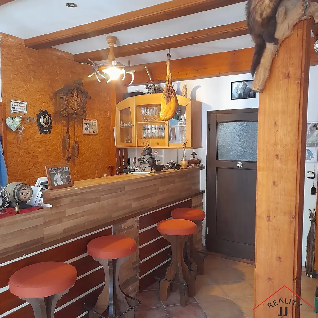Dvoupodlažní budova restaurace o velikosti 80 m² (zastavěná plocha) nabízí uvnitř kapacitu 25 -30 míst k sezení. Dalších 15-16 míst je k dispozici na terase u krbu. Dále je zde zázemí - kuchyně, sociální zázemí, 2 sklady a technické zázemí. V horním patře je velký apartmán – ob. pokoj, dva hostinské pokoje s koupelnou a toaletou, celkem pro 6 osob + přistýlka Vzhledem k tomu, že areál stojí na svahu, vychází se z apartmánu přímo na terasu, která je na úrovni terénu.