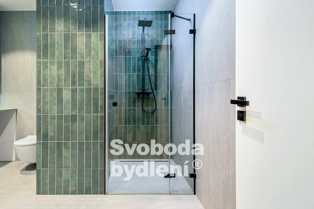 Veškeré využité materiály jsou nadstandardní, viz. velkoformátová dlažba v koupelně, parkety v obytné místnosti, materiály zařízení, designové osvětlení ,atd..