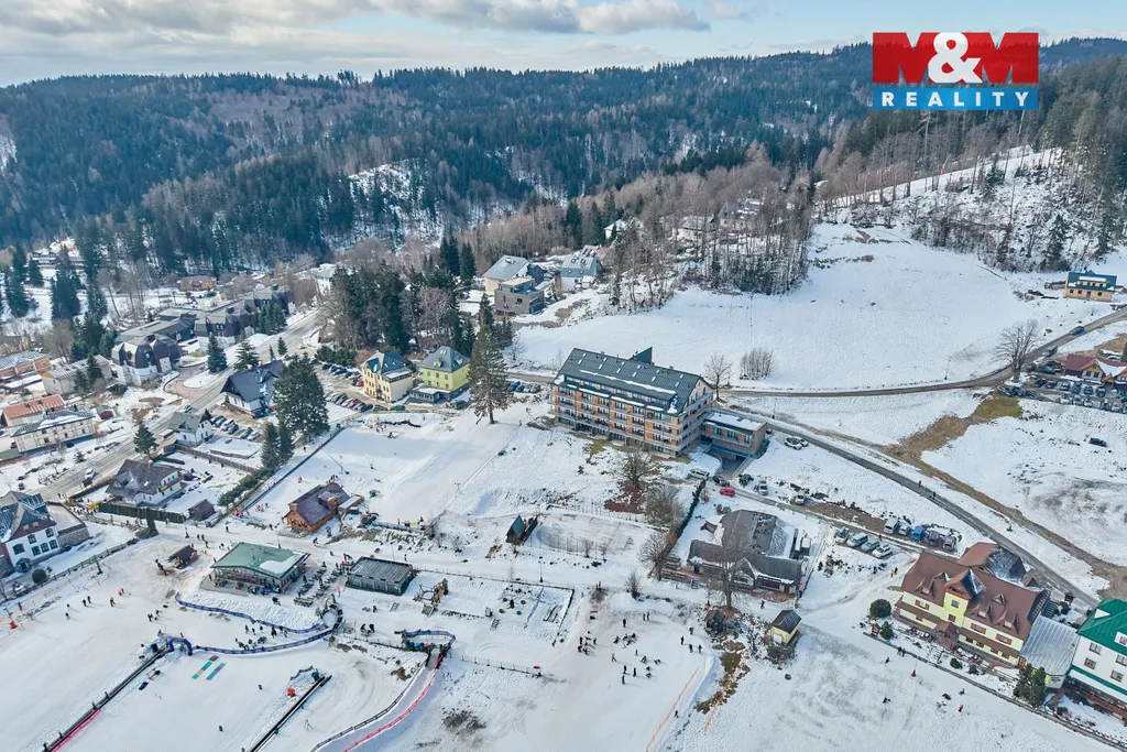 Prodej ski apartmánu 1+kk 34 m² Jánské Lázně, přímo pod sjezdovkou na Černou horu. Apartmán je stylově zařízený a prodává se s celkový vybavením. Je vhodný pro rekreační pobyt a nebo dlouhodobé bydlení pro milovníky hor, přírody, klidu, lyžování, či horské turistiky. Ski areál Černá hora, ski school, upravené běžecké tratě, restaurace a další služby pro návštěvníky jsou v těsné blízkosti apartmánového domu. Jánské Lázně 10 min chůze. Zde je i Aquapark, kino. Součástí prodeje je sklep, ski box s vyhříváním. V současné době je apartmán pronajímán přes cestovní kancelář v Trutnově, který zajištuje i úklid. Zavedený internet. Občanská dostupnost a vybavenost velmi dobrá.