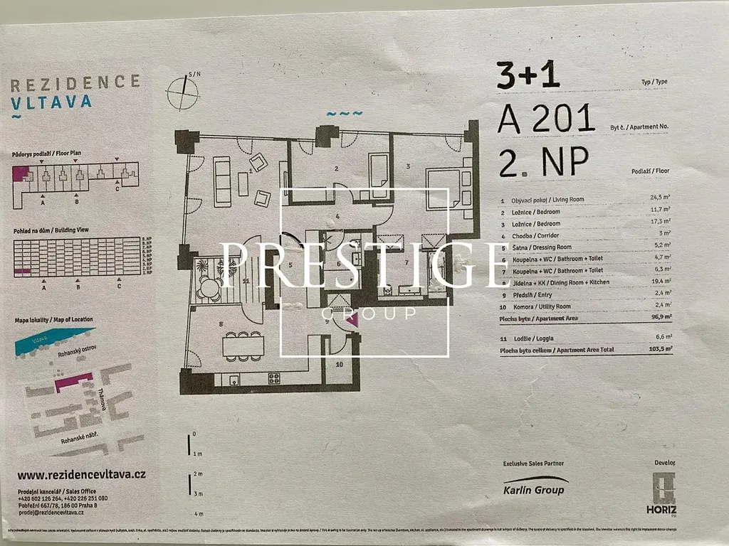 «PRESTIGE GROUP» nabízí k prodeji byt 3+1 s balkonem o velikosti 103,5 m2 , který se nachází v rezidence Vltava na Praze 8 - Karlín.