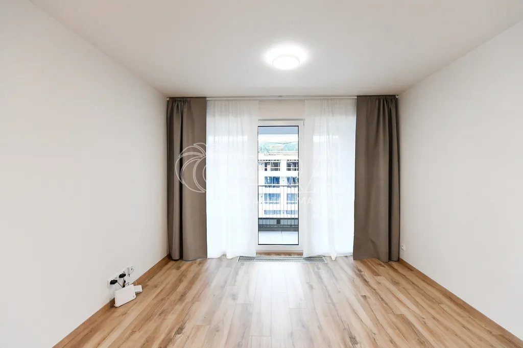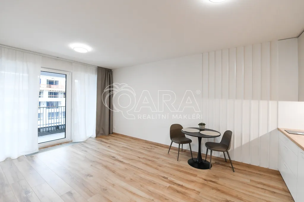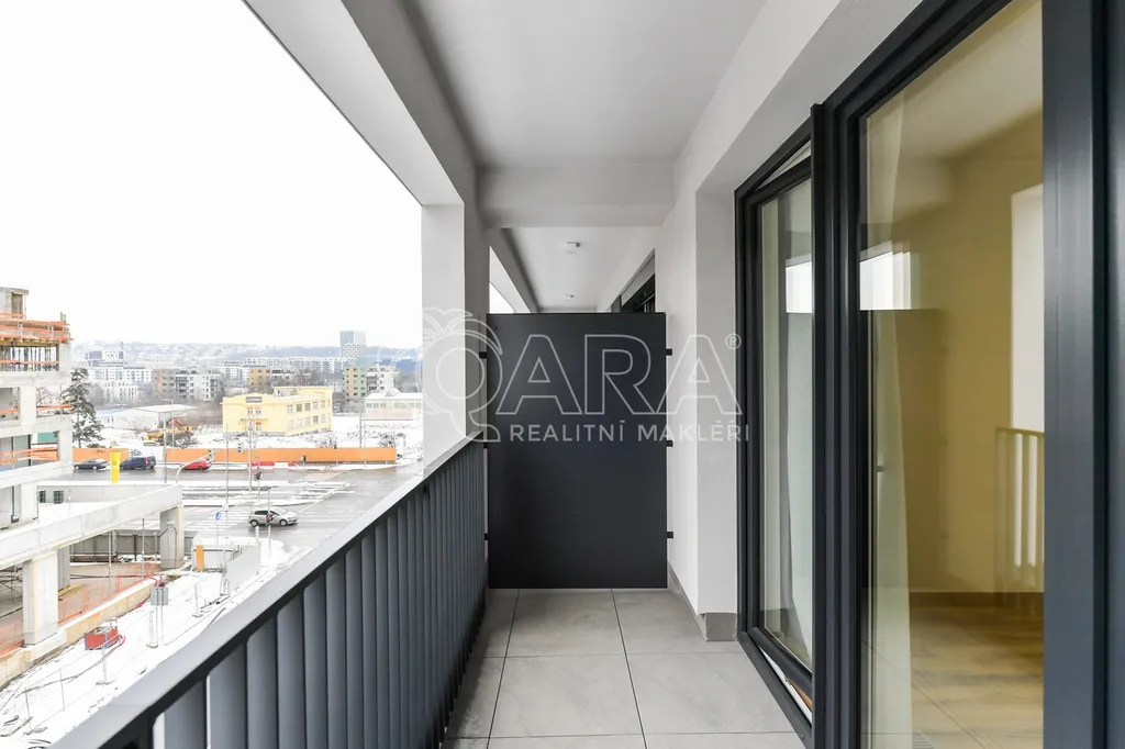 Byt o celkové výměře 30,6 m² je umístěn v 5. NP novostavby bytového domu z roku 2026. Byt sestává z obývacího pokoje s kuchyňským koutem, koupelny se sprchovým koutem a WC a předsíně. V bytě je položena plovoucí podlaha a dlažba. Orientace bytu je na západ. Z obývacího pokoje je francouzským oknem možný vstup na velkou lodžii (5,5 m²) s výhledem do následující etapy bytového projektu. Byt je vybaven kuchyňskou linkou s vestavěnými spotřebiči, včetně myčky. K bytu dále náleží garážové stání v suterénu domu v ceně 2.500,- Kč. Byt a stání se pronajímají společně.