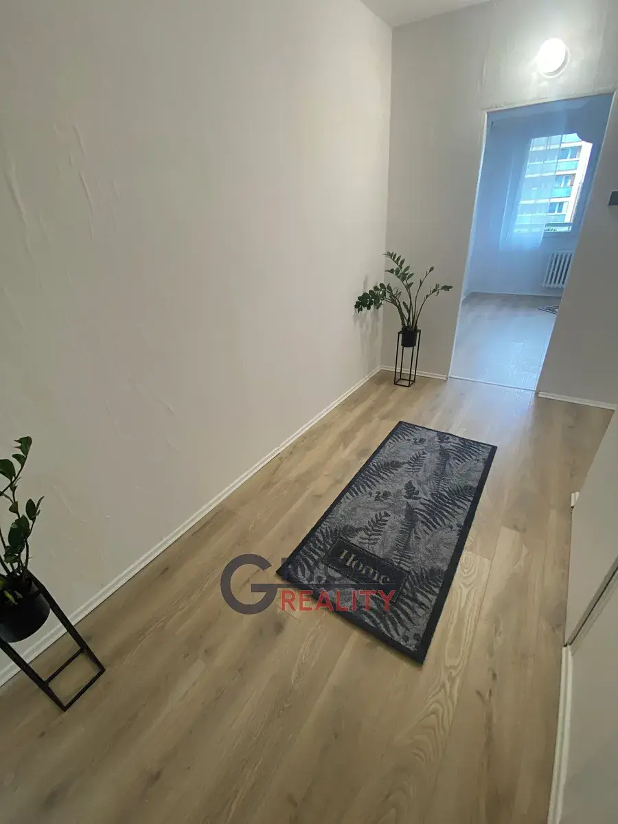 Námi nabízený byt 2+kk/L (45 m2 + velká lodžie 7 m2) v původním, ale udržovaném stavu se nachází v 3.NP/ z 10.NP, vedle bytu vlastní komora (1,22 m2), v přízemí domu vlastní sklepní kóje (1,40 m2). Dispozice bytu: vstupní chodba (6,37 m2) do tvaru "L", vpravo samost. WC (1 m2) a koupelna (2,16 m2) s přípojkou pro pračku. Naproti vchodu ložnice (12 m2) s oknem na lodžii. Vpravo vstupujeme do obývacího pokoje (15,45 m2), který je průchozí do kuchyně (5 m2), kde byla vyměněna kuchyňská linka za novou v bílém provedení. Z obývacího pokoje je vstup francouzskými dveřmi na lodžii (7 m2), která je přes oba pokoje a orientována na východ. V celém bytě plovoucí nové podlahy, topení dálkové ústřední.