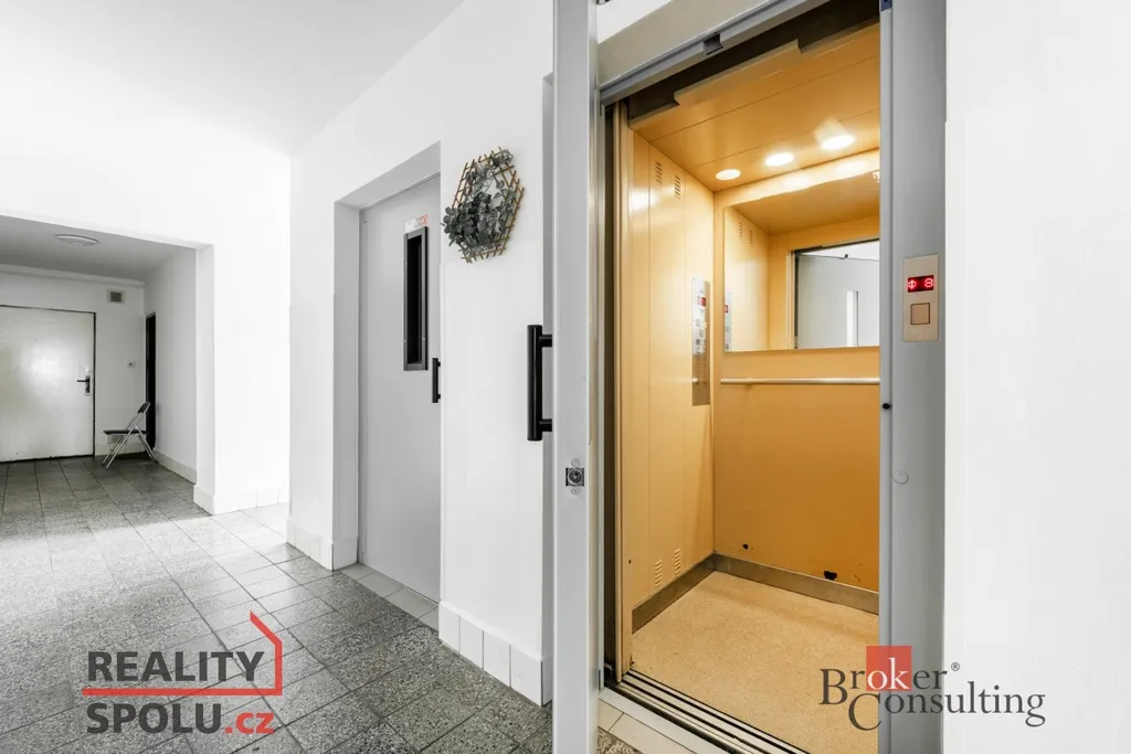 Byt se nachází v 8. patře, což zajišťuje dostatek světla a příjemný výhled. Dům je vybaven výtahem.