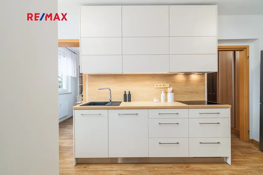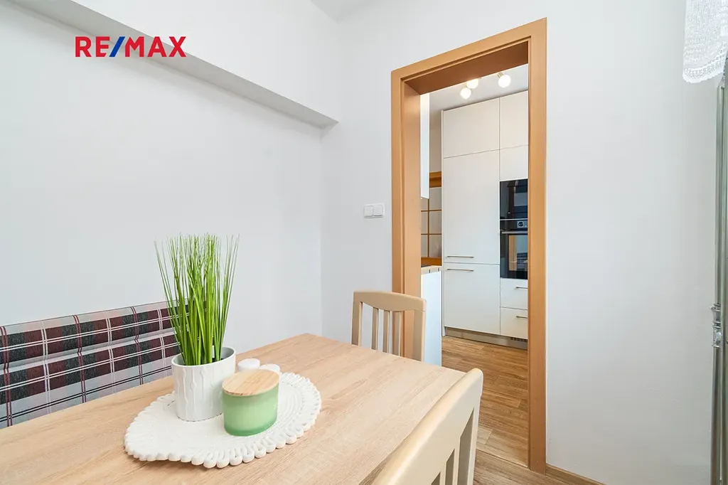Tento krásný a moderní byt o dispozici 3+1 prošel zdařilou rekonstrukcí, díky které působí svěže, prakticky a velmi útulně. Byt má zděné jádro, nové podlahy, samostatné WC a koupelnu se sprchovým koutem a žebříkovým topením. Srdcem celého bytu je bezesporu prostorná vestavěná kuchyně s kvalitními vestavnými spotřebiči značky Gorenje – myčka, sporák, mikrovlnná trouba, varná deska a granitový dřez. Kuchyně je navržena s důrazem na každodenní provoz: chytře řešené šuplíky, dostatek pracovní plochy a promyšlené úložné prostory ocení každá rodina.