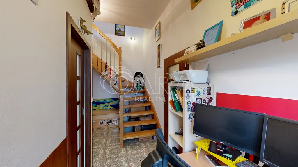 Dispozice bytu umožňuje stavební rozdělení na dvě jednotky 2+kk, což otevírá zajímavé investiční možnosti.