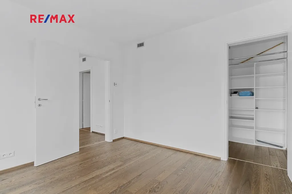 Podlahy jsou dřevěné, koupelna je vybavena prostorným bezvaničkovým sprchovým koutem. Ložnice má svoji šatnu s policovým systémem na míru.