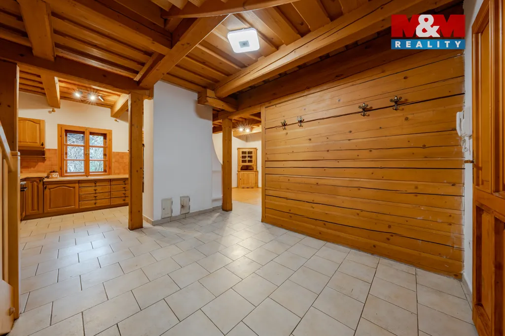 Nabízíme k prodeji roubenku kolaudovanou v roce 2002. Tento rodinný dům s garážovým stáním a udržovanou zahradou stojí v klidné části obce. V 1.NP je obývací pokoj s rohovou kuchyní, krbem a kachlovými kamny, koupelna s WC a technická místnost. Ve 2. NP se nacházejí 3 pokoje, jeden z nich možno využít jako pracovnu nebo šatnu, prostorná koupelna s WC a saunou. Kolem domu je okrasná zahrada s parkovacím stáním, která zajišťuje maximální soukromí. Celková plocha pozemku je 662 m2. Dům je dostupný po obecní komunikaci, napojen na elektřinu, obecní vodovod a kanalizaci. Ohřev vody elektrickým bojlerem. Vytápění krbem s průduchy, zajišťujícími rozvod tepla po celém domě, případně kachlovými kamny nebo přímotopy. Konstrukce domu zaručují nízké provozní náklady. Ideální pro toho, kdo hledá klidné, stylové bydlení. Doporučujeme prohlídku, s financováním rádi pomůžeme.