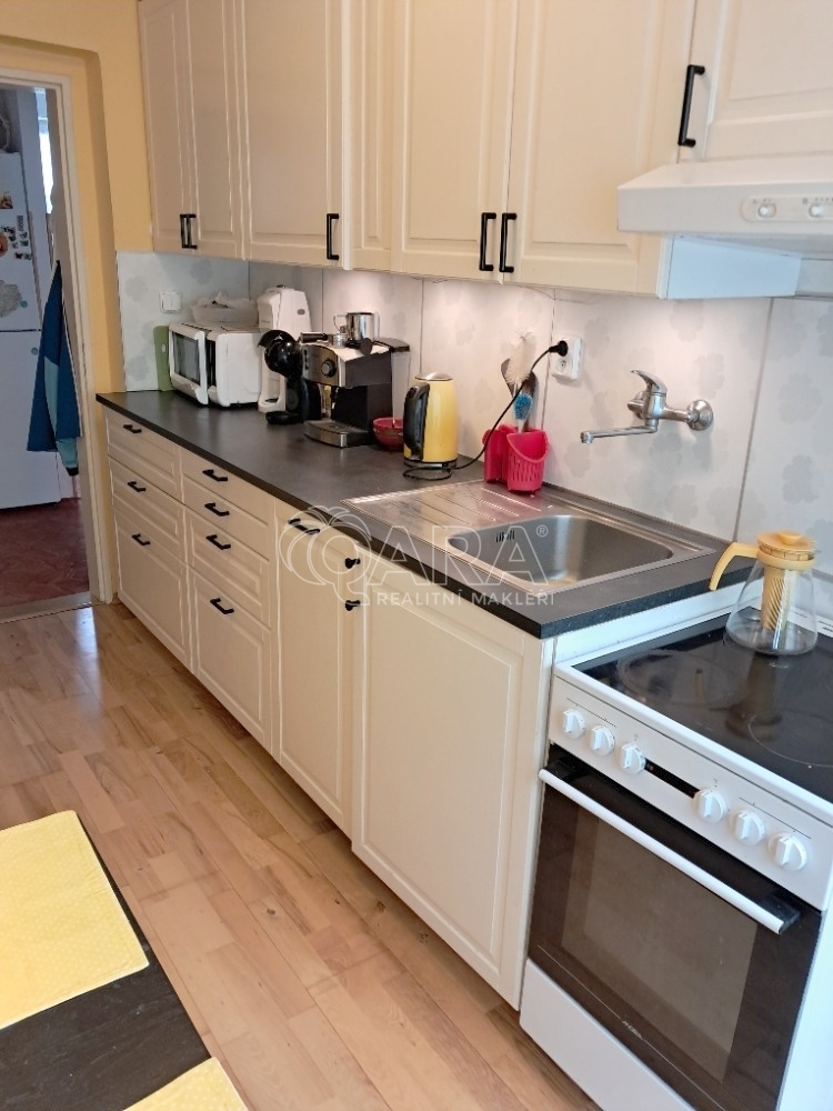 Nabízíme příjemný byt v prvním nadzemním podlaží (zvýšené přízemí) o velikosti 3+1 s podlahovou plochou 72 m2 a balkonem 3,6 m2 ve Velkých Přílepech. V obývacím pokoji a kuchyni je dřevěná podlaha z roku 2015, v ostatních místnostech je koberec, PVC a dlažba, plastová okna (dvojskla) jsou z roku 2014, vestavěné skříně v předsíni. Pokoje jsou neprůchozí, WC a koupelna jsou samostatné. Topení je etážové přes elektrokotel a ohřev vody přes el. bojler. Orientace oken východ a západ. V suterénu domu jsou k dispozici dva sklepy o celkové výměře 8,4 m2. Klidné místo. Dům je z roku 1982. Zastávka autobusu "Podmoráňská" je cca 2 min pěšky od domu. Autem jste za 15 min v Dejvicích. Hypoteční úvěr vám vyřídíme zdarma. Volejte a domluvte si prohlídku.