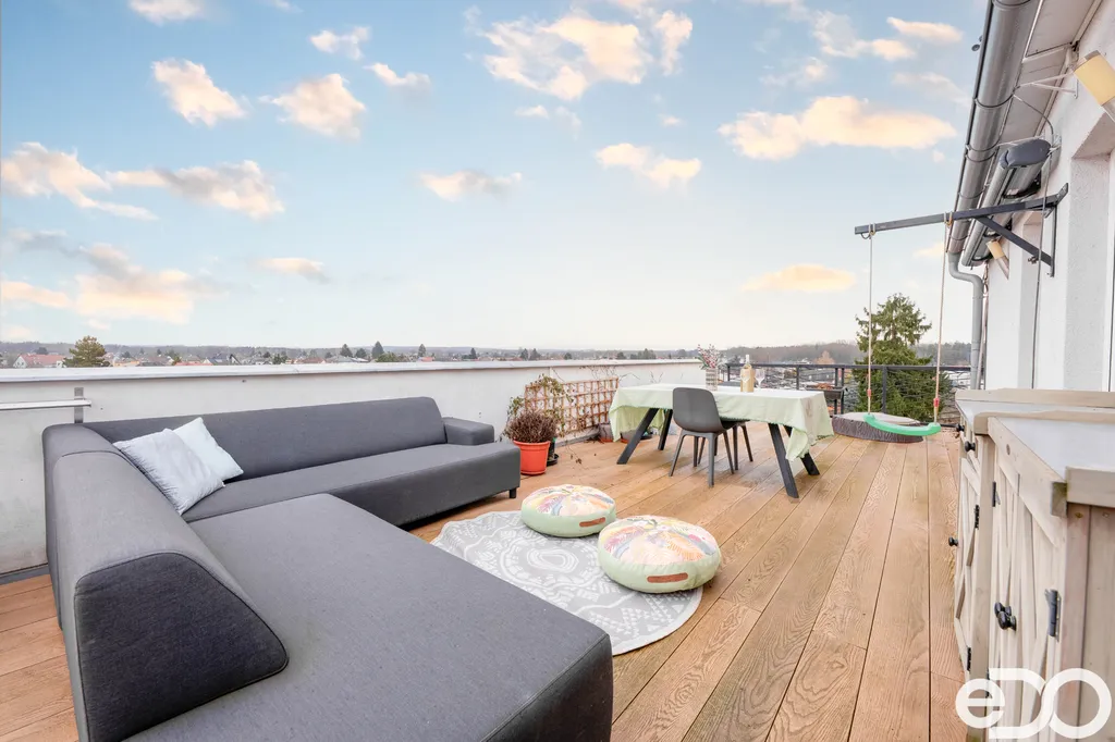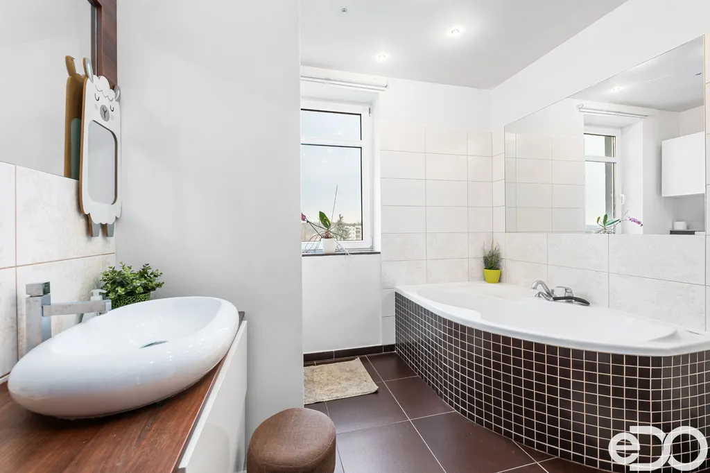Hlavní předností bytu je prostorná terasa o výměře 25 m² s nerušeným výhledem na Krkonoše a Orlické hory.