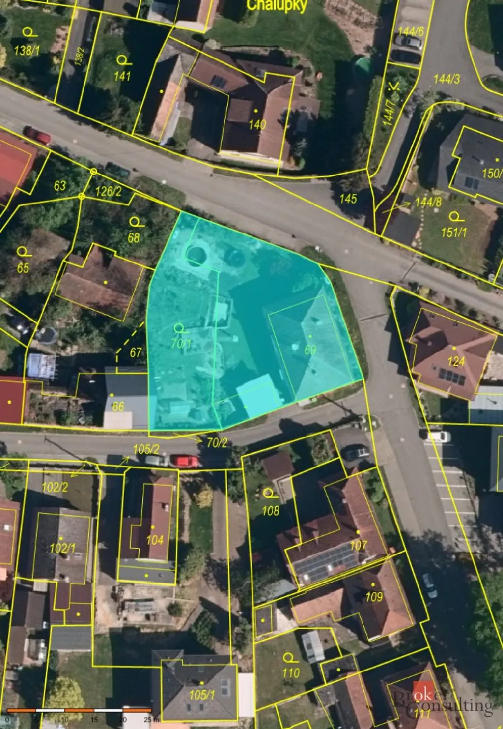 Celková výměra pozemku je 1 010 m², z toho zahrada kolem domu 880 m².