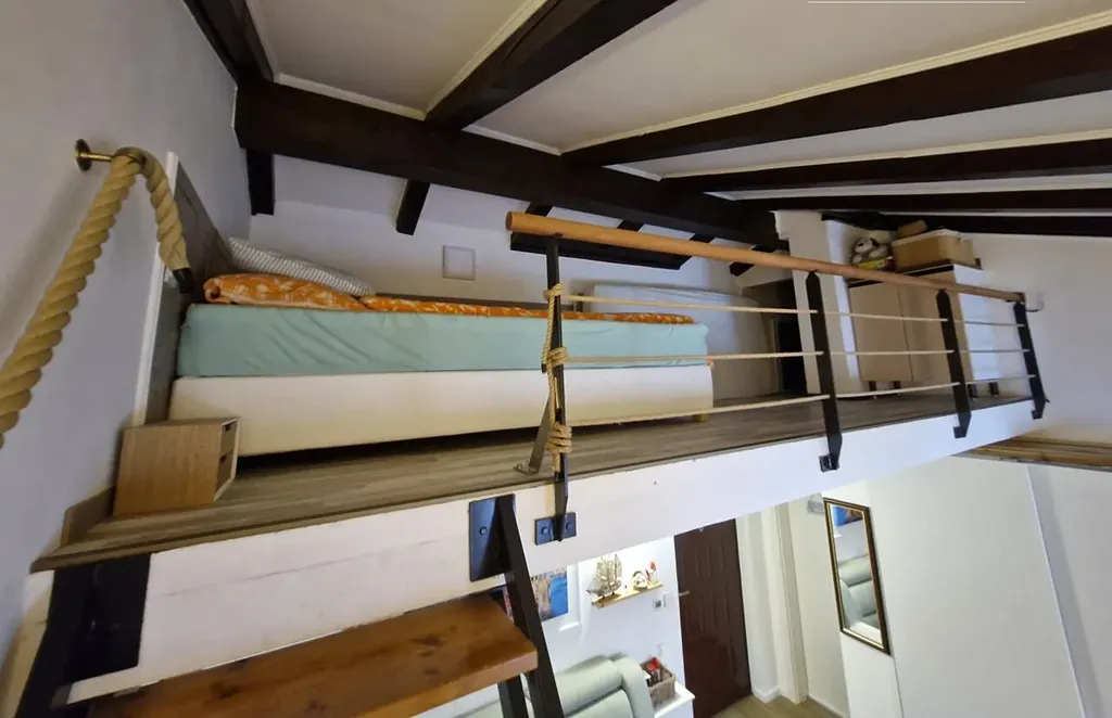Nabízí se k prodeji plně a vkusně zařízený byt ve 3. patře o celkové ploše 30 m² + galerie cca 14 m². Byt má částečný výhled na moře, které je vzdálené pouhých 50 m, zatímco na pláž dojdete příjemnou procházkou za cca 5 minut.