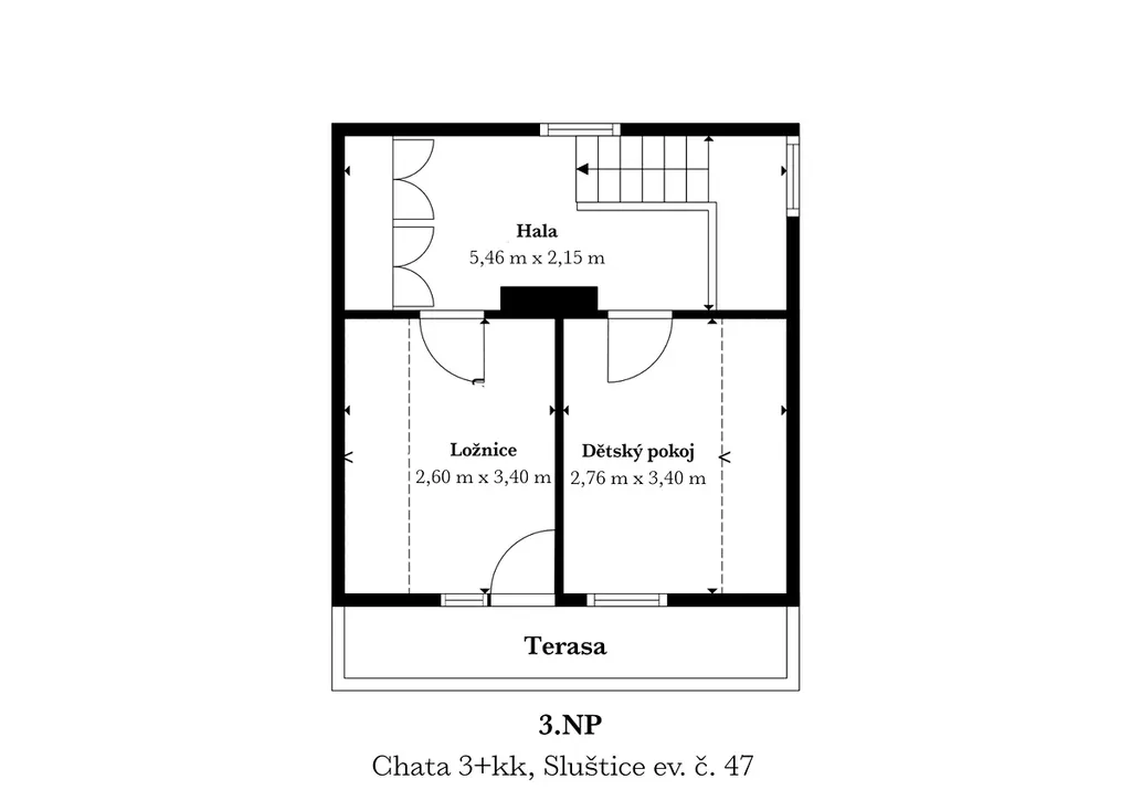 • 1. NP: technická místnost, koupelna s vanou, samostatné WC, vstupní hala, terasa