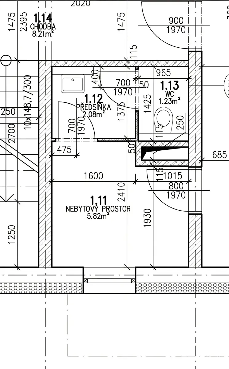 Nebytový prostor sestává ze samostatné místnosti, předsíně s umyvadlem a skříňkou, samostatné toalety.