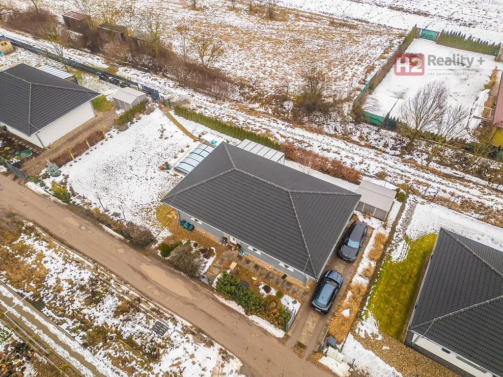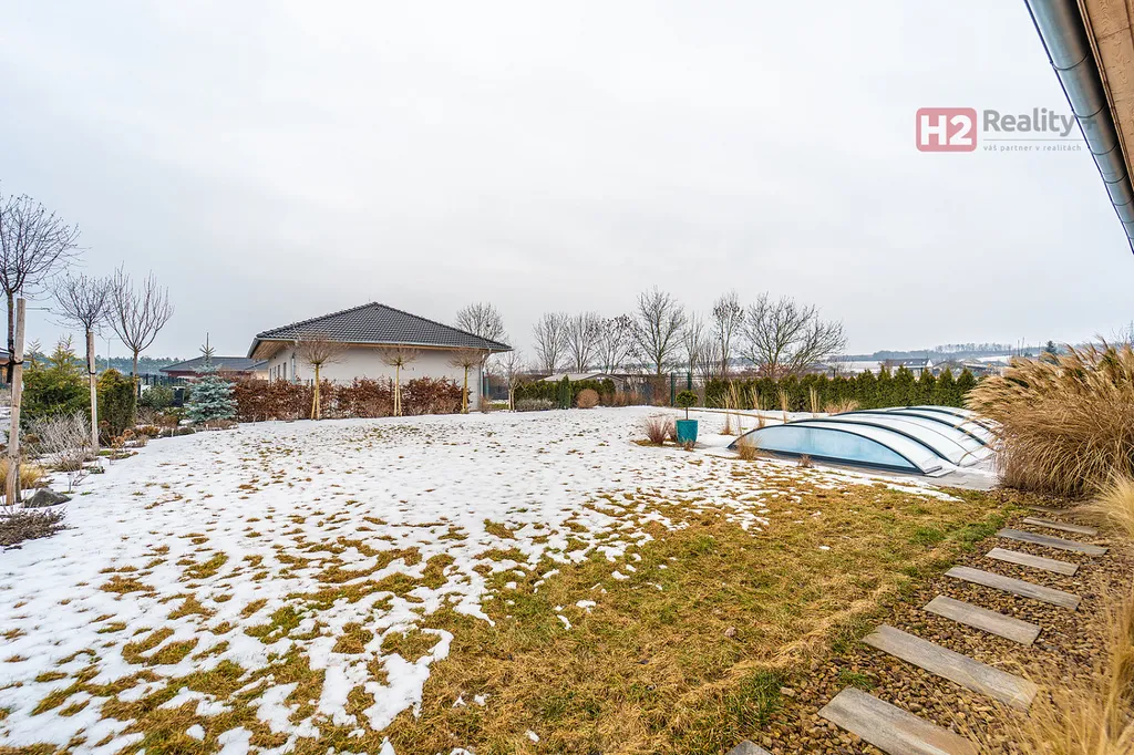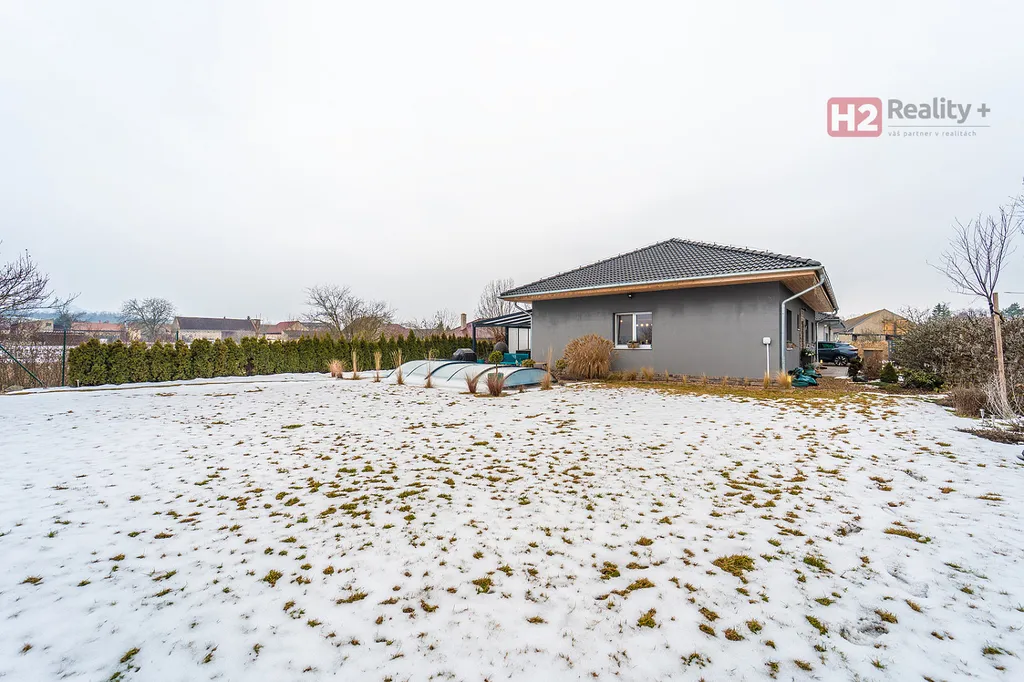 Dispozice domu 4+kk + technická místnost + krytý venkovní prostor k sezení, podlahová plocha 125 m² na pozemku o výměře 765 m², pozemek zatravněný, je k dispozici krytý bazén se slanou vodou (filtrační zařízení uloženo v zemi) a samostatně stojící domek na uskladnění zahradní techniky a nářadí. Stavební materiál cihla a tvárnice, kolaudace rok 2021 - prodává první majitel. V celém domě použity velmi kvalitní materiály, pečlivě vybíráno k maximálnímu uživatelskému pohodlí.