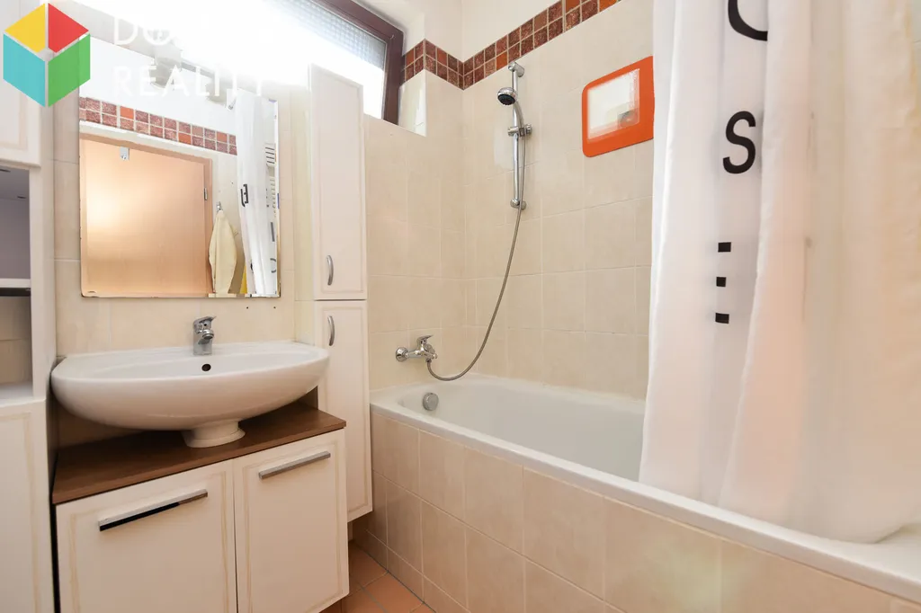 Plocha bytu činí 56 m2. Ze vstupní chodby s praktickou vestavěnou skříní se dostanete do obývacího pokoje s kuchyňskou linkou, která je vybavená lednicí i myčkou. Z chodby na druhou stranu vstoupíte do ložnice, ve která je vestavěnou skříň. V koupelně s oknem je vana, umyvadlo a WC. Na fotkách je vidět i nábytek a vybavení bývalých nájemců - v bytě nebude postel, pračka, kancelářská židle, pohovka, stůl a židle, komoda. V obývacím pokoji zůstane obývací stěna.