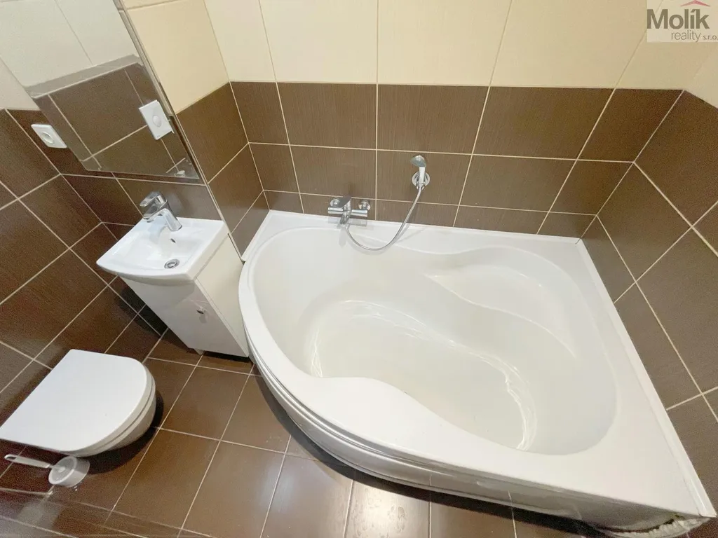 Samotný byt je rovněž kompletně zrekonstruovaný - koupelna s rohovou vanou, WC zápustný modul, keramické obklady a dlažba, umyvadlo atd. V kuchyni kuchyňská linka, vč. spotřebičů atd.