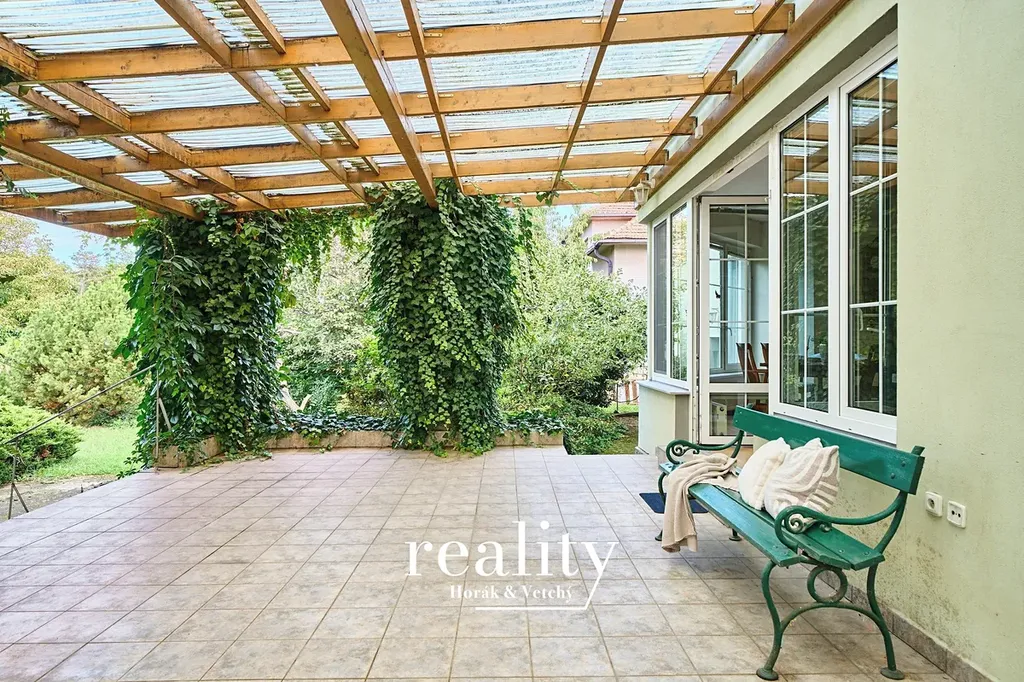 Na zahradě se nachází zastřešený bazén (zde je nutná rekonstrukce) a větší zahradní domek, který byl používán jako ateliér, můžete v něm ubytovat hosty nebo si zde vybudovat saunu nebo posilovnu.