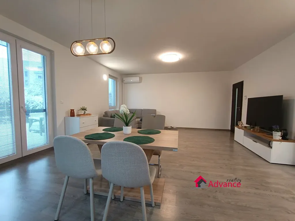Nabízím vám ke koupi zajímavý byt netradičního půdorysu se dvěma koupelnami o dispozici 3+kk a podlahové ploše 87 m², který ústí do soukromé zahrady s terasou o velikosti 60 m². Tento venkovní prostor se stane vaší oázou klidu, ideální pro ranní snídani, relaxaci, letní grilování s přáteli nebo bezpečné místo pro děti. Nejen v létě jistě oceníte výsuvnou markýzu, která vytvoří příjemný stín na terase.