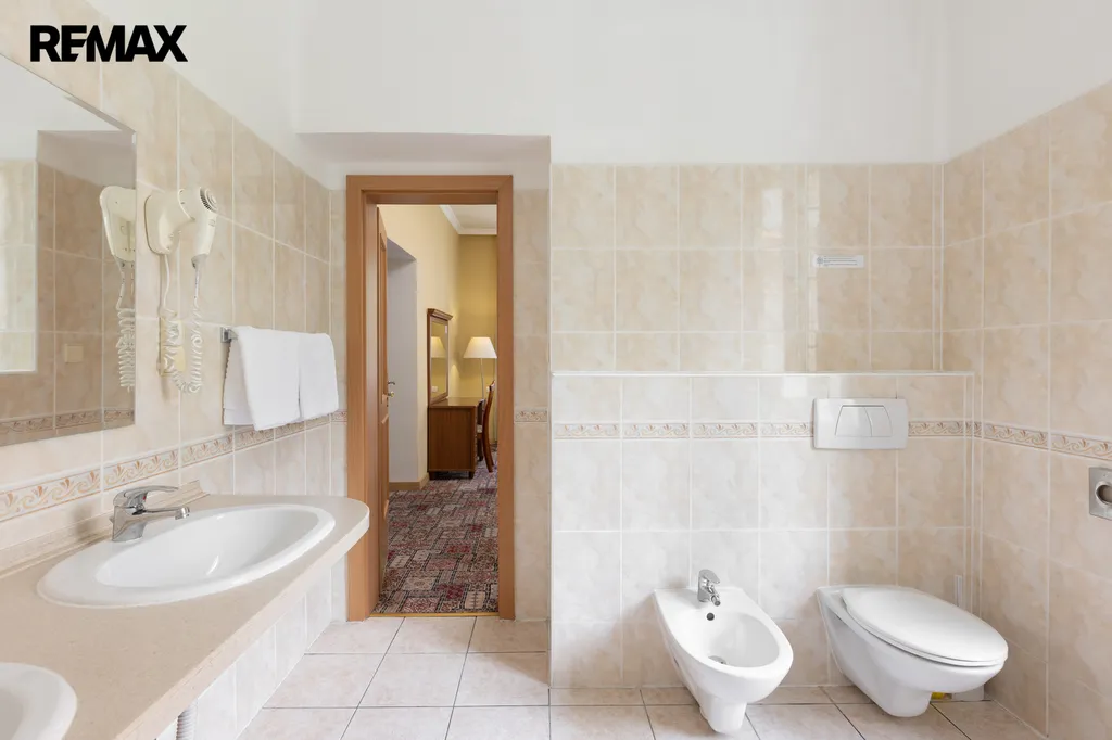 Pokoje a apartmány se nacházejí v prvním a druhém nadzemním podlaží. Podkroví nabízí dva samostatné byty a velkorysý nevyužitý prostor s již vypracovanou studií na rozšíření kapacity. Nový majitel tak může realizovat vlastní záměr – vybudovat další pokoje, apartmány či jiné provozní zázemí dle svých představ.
