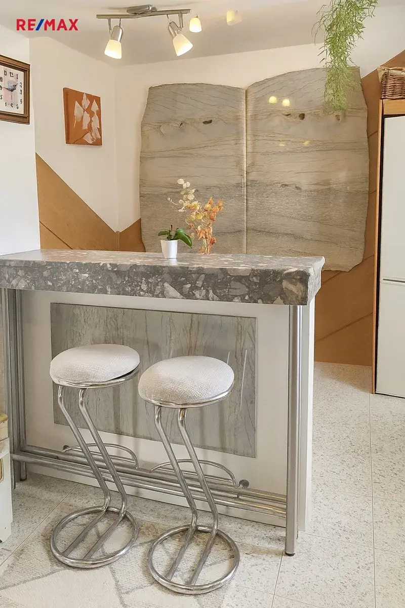 Jedná se o ojedinělý prostor s řadou atypických interiérových prvků, které potěší každého náročného kupujícího. Byt disponuje zajímavými výklenky i členěním. Prostornému obývacímu pokoji s krbem dominuje knihovna. Dvě samostatné prostorné ložnice jsou vkusně členěny na denní a noční odpočinkovou zónu. Pokoje disponují dostatečnými úložnými prostory. Kuchyňská linka umístěná pod oknem zajišťuje dostatek denního světla pro běžné denní činnosti. Barový pult odděluje jídelní kout, který disponuje jídelním stolem s vyhřívanou stolní kamennou deskou. Na stěně vedle jídelního koutu se nachází mramorový topný panel. Byt je velmi prostorný a prosluněný s dostatkem denního světla. Přírodní materiály použité v interiéru dodávají bytu neopakovatelnou atmosféru a unikátnost.