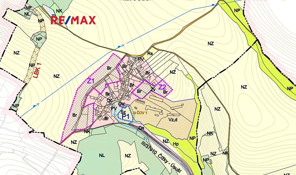 Územní plán: zastavitelná plocha - Br (označení lokalit Z1 )