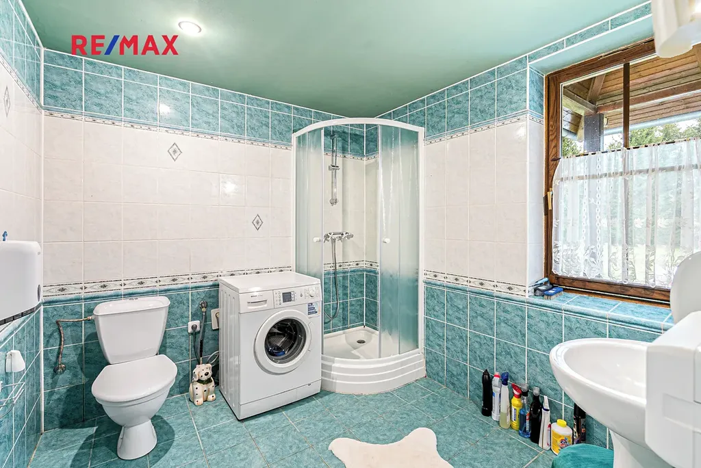 • Vytápění – jako zdroj tepla a ohřev teplé vody je ve sklepě ocelový teplovodní zplyňovací kotel na spalování kusového dřeva, akumulační nádrž o obsahu 1000L - 3kusy. Momentálně je dům vytápěn krbovými kamny s výměníkem. Ohřev vody kotlem, v případě vytápění krbem – ohřev boilerem.