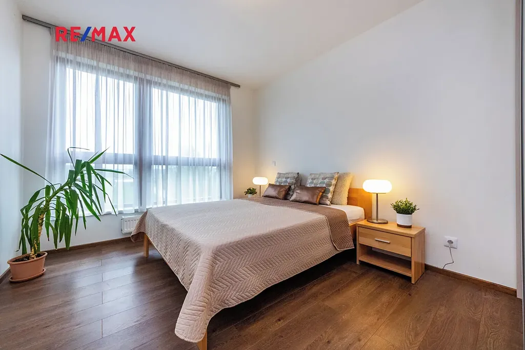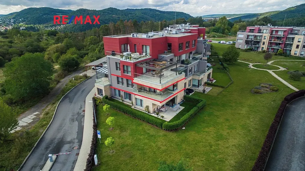 Prakticky navržený byt je vhodný jak pro komfortní rodinné bydlení, tak i pro jednotlivce. Plně vybavený kuchyňský kout s jídelnou zaujme svým estetickým provedením a je příjemně prosvětlen velkým oknem s výhledem do okolní zeleně. Z útulného obývacího pokoje je přímý vstup na velkorysou terasu. Ložnice i dětský pokoj či pracovna jsou rovněž prosvětleny denním světlem díky velkým oknům, která jsou, stejně jako ostatní okna v bytě, vybavena venkovními roletami zajišťujícími maximální komfort a soukromí. Pro příjemné klima v průběhu celého roku je byt dále vybaven klimatizací.