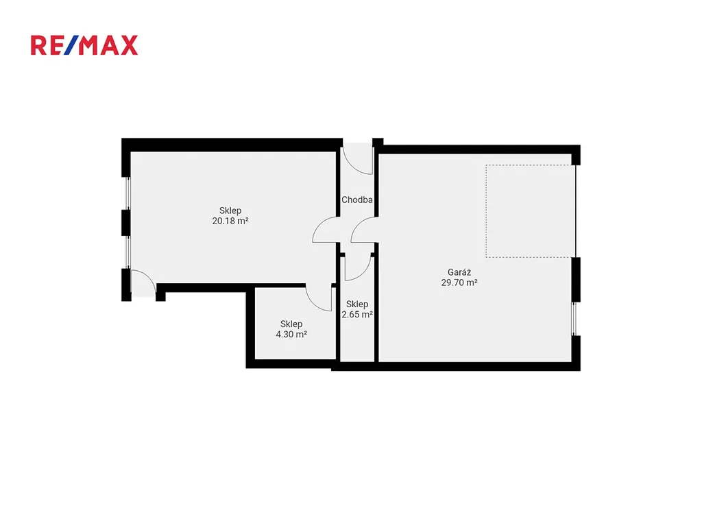 Garáž (30 m²) a sklepní prostor s výstupem na zahradu