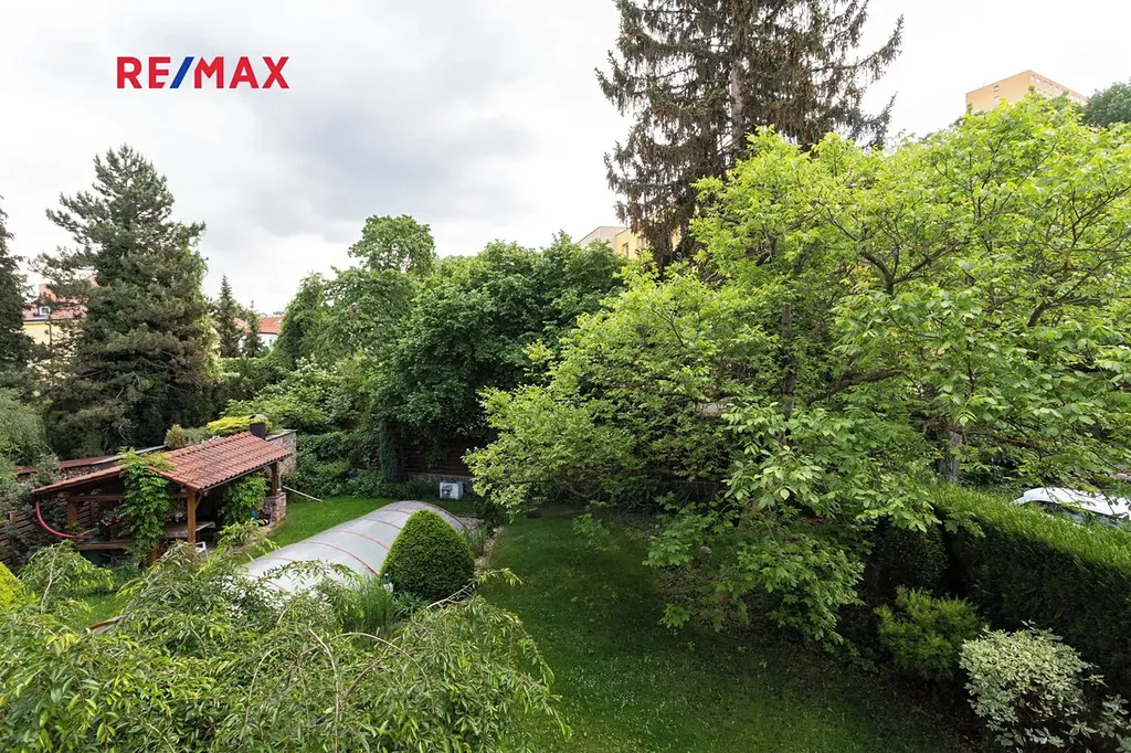 Dům stojí v klidné části s výhledem do udržované zahrady. Parkování je možné na ulici. Autobusová zastávka Višňová je 100 m od domu, metro Budějovická dostupné za 8 minut MHD. V docházkové vzdálenosti se nachází Velký háj.