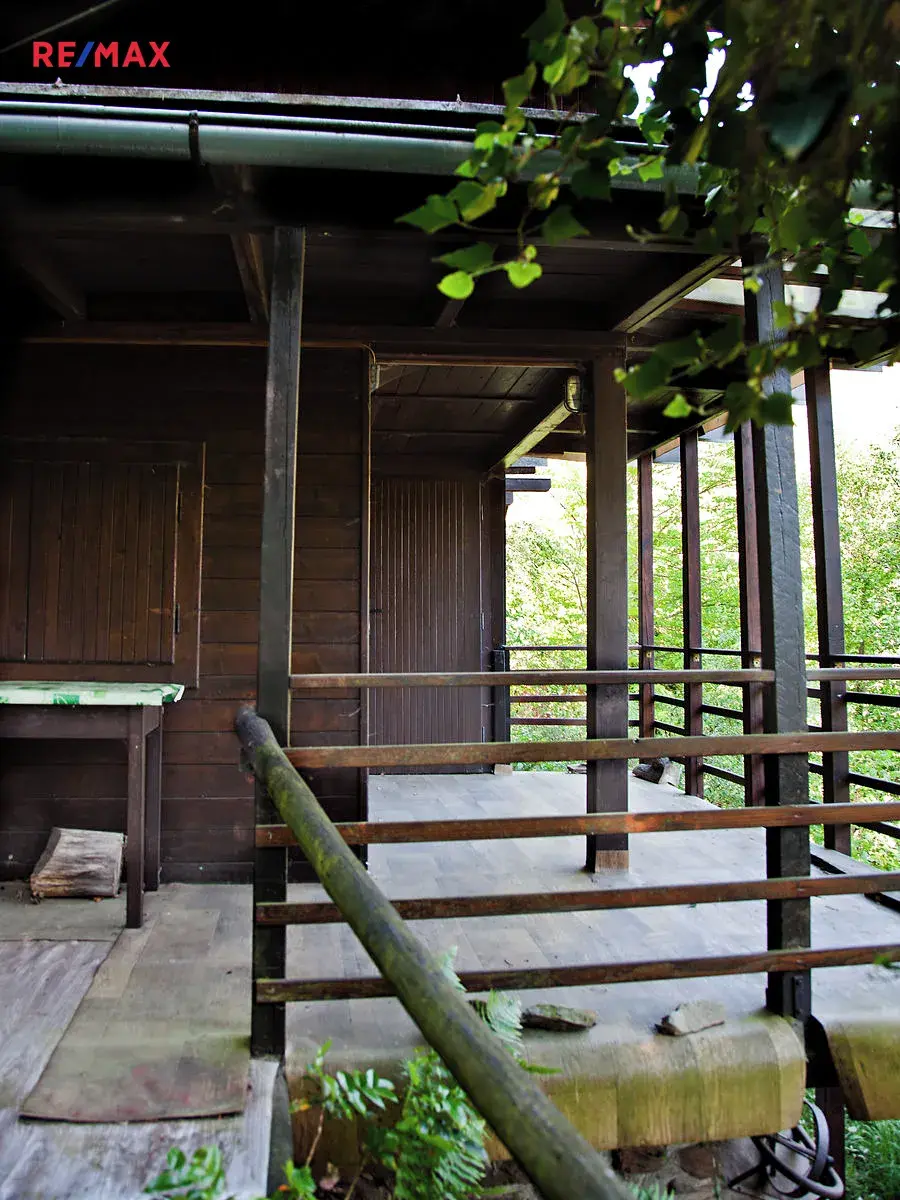 Chata se nachází na vlastním pozemku. V přízemí má menší pokoj s kuchyňkou a v podkroví pokoj na spaní. Klidné posezení skýtá zastřešená venkovní terasa s výhledem na řeku.