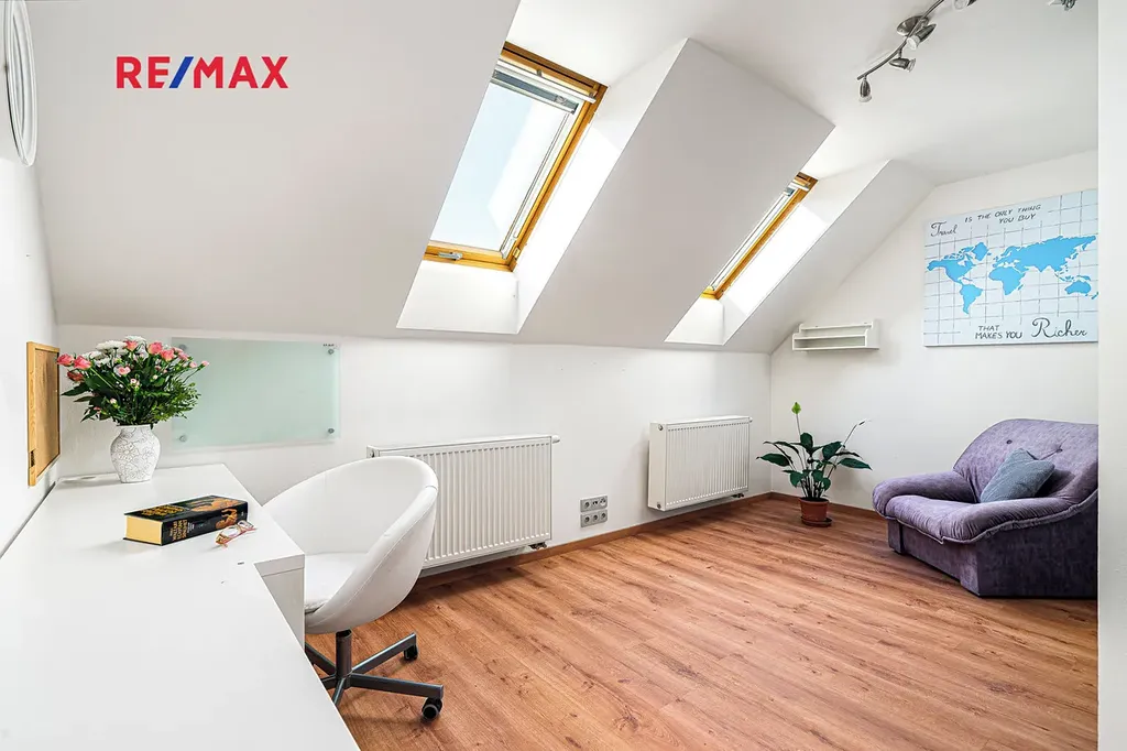 Pro početnou rodinu dům nabízí několik samostatných pokojů/ložnic (viz půdorys ve fotogalerii). Zejména děti ocení prostorný pokoj na půdě, ve kterém mohou za deštivých dnů plánovat svá další dobrodružství v zahradní oáze.