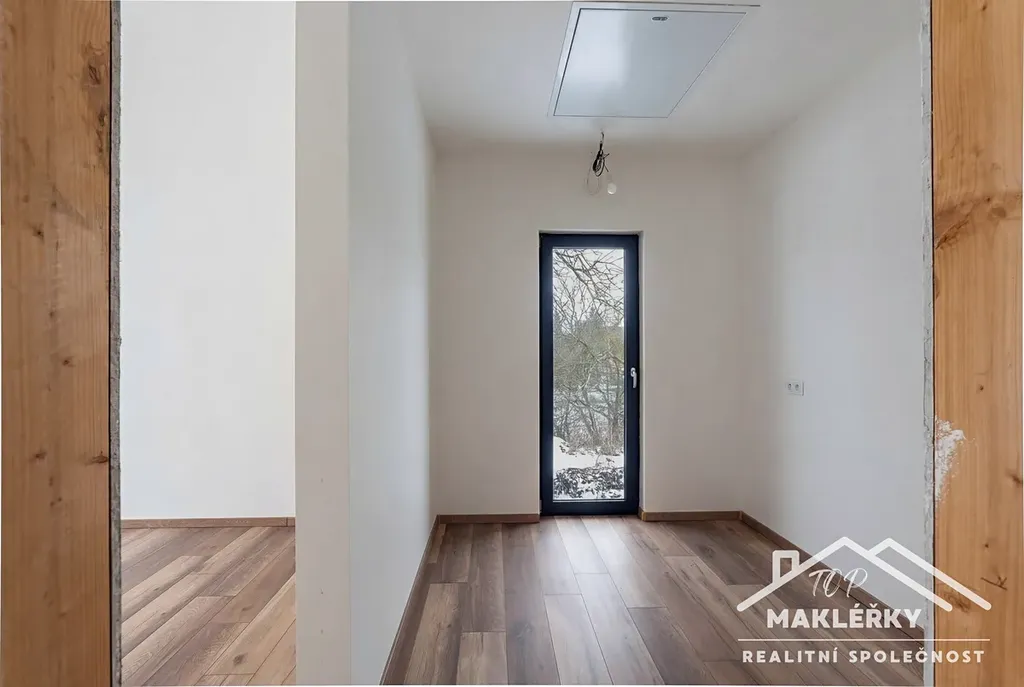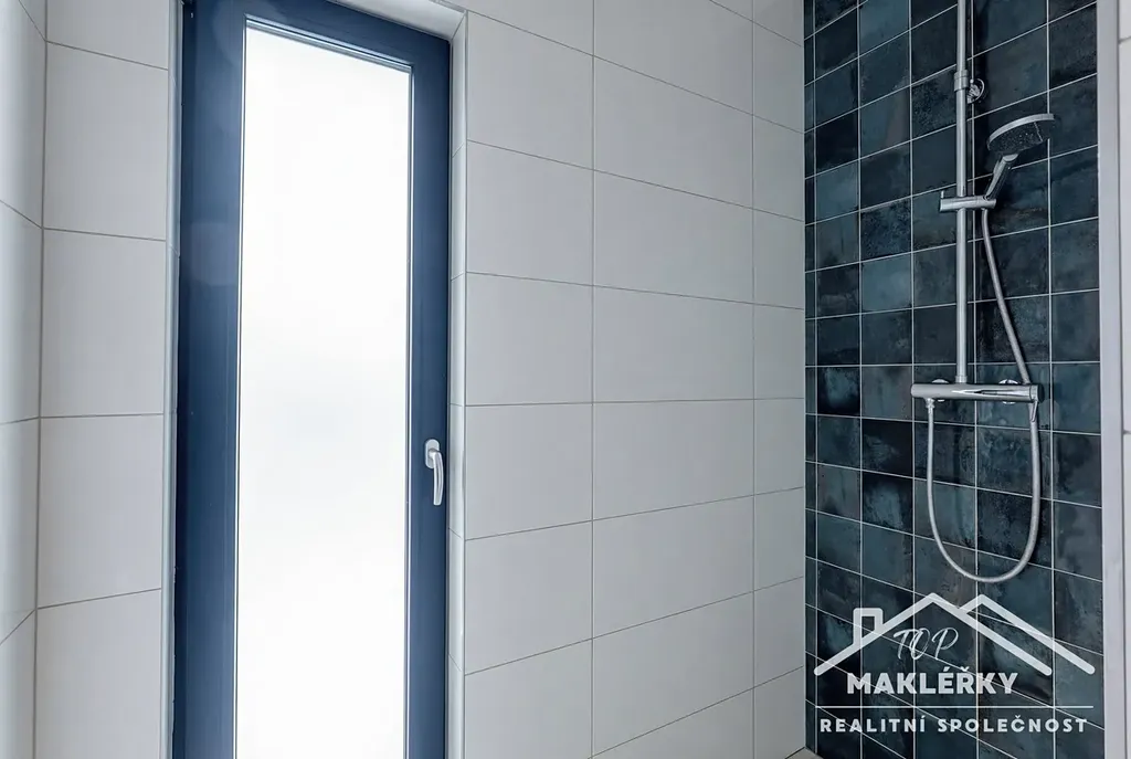 Vstup tvoří praktické zádveří navazující na technické zázemí domu, hlavní koupelnu s toaletou a jeden pokoj.