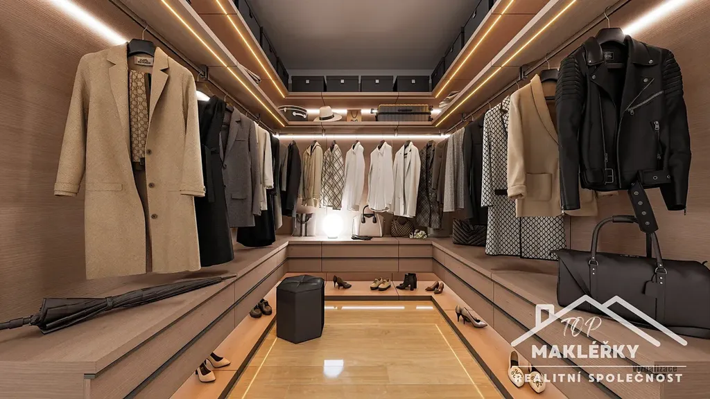 Důmyslná dispozice je řešena efektivně – bez slepých a nevyužitelných spojovacích chodeb. V každém pokoji je počítáno s prostorem pro vestavěnou skříň, přičemž další úložné prostory se nachází v podkroví se dvěma samostatnými vstupy.
