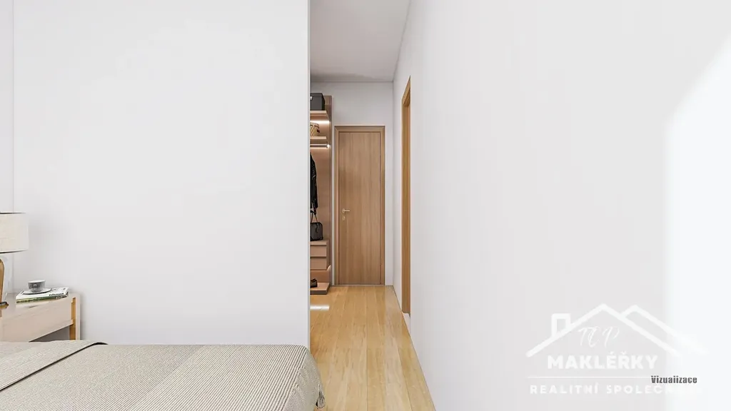 Přímo z hlavního obývacího prostoru je vstup do dalších dvou pokojů a zadní části domu, kterou tvoří klidová zóna, ložnice s vlastní šatnou a samostatnou koupelnou s toaletou.
