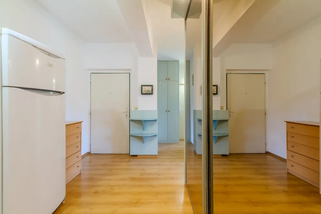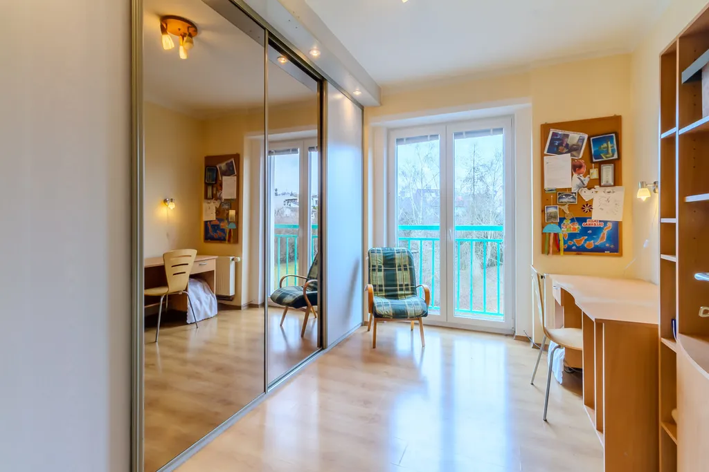 Srdcem bytu je obývací pokoj s kuchyňským koutem o ploše 32 m², který působí vzdušně a přirozeně propojuje společenskou část bytu. Bez problémů zde vytvoříte plnohodnotnou jídelnu i pohodlný obývací prostor. Velká okna zajišťují dostatek denního světla a přímý vstup na balkon (2,6 m²) nabízí příjemné místo pro relaxaci.